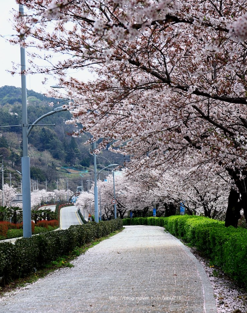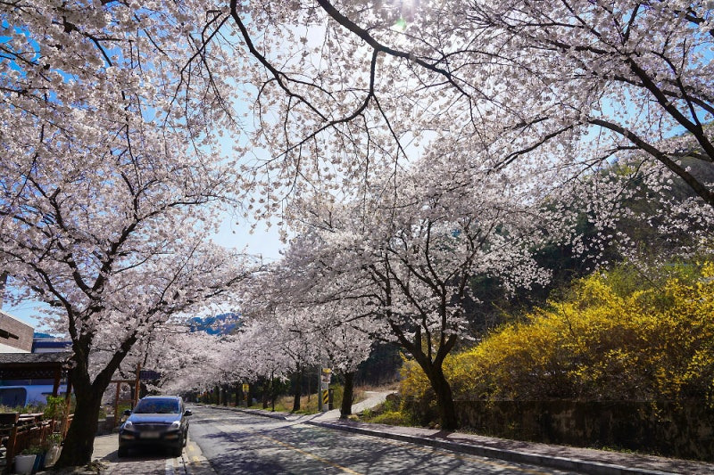 - 특징: 벚꽃과 푸른 바다가 어우러진 해안 벚꽃길